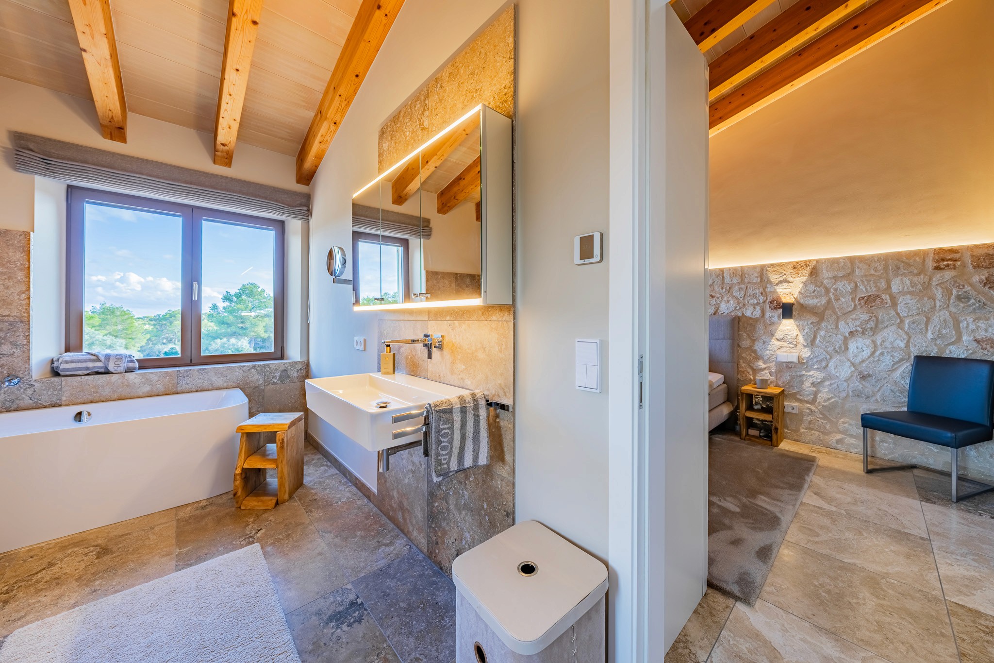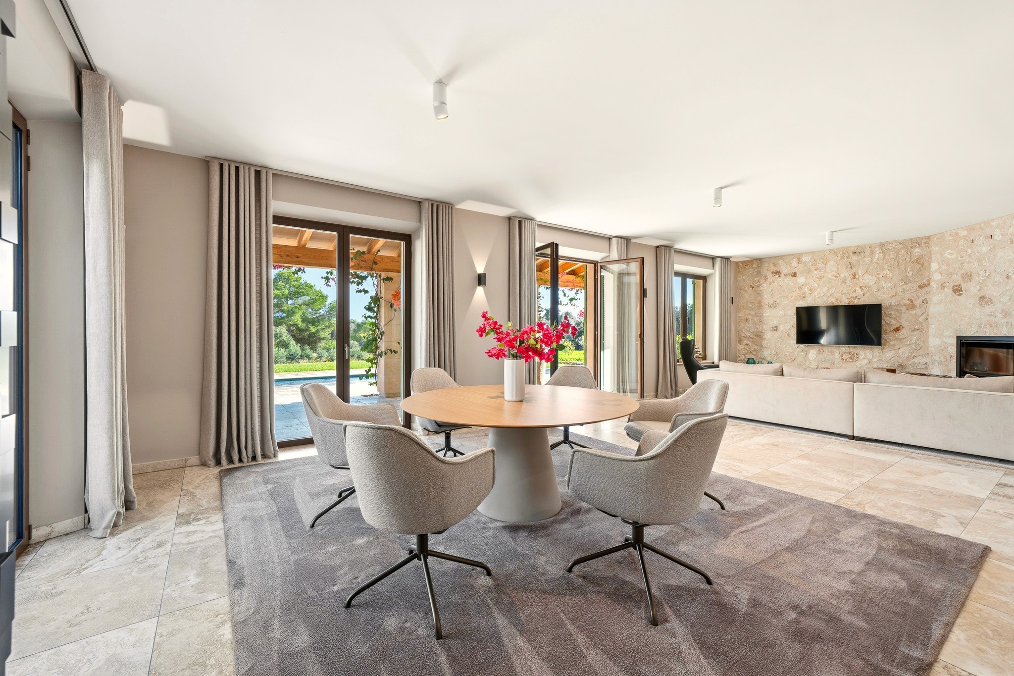 The objective was to highlight clean lines, natural light, and the relationship between interior and exterior spaces.